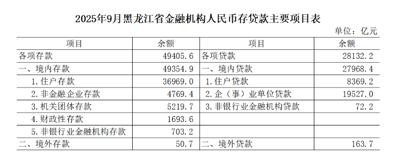 2025年9月黑龙江省金融统计数据